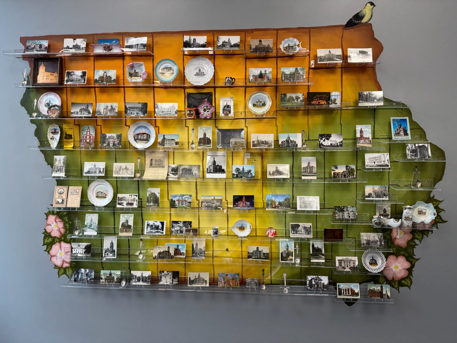 Windsor Heights, Iowa — Chris Johnston, attorney and senior partner at the Law Group of Iowa and owner of the Law Museum of Iowa , proudly announces the unveiling of a unique and innovative mural titled “Iowa’s Amaizing Courthouses.” This expansive artwork, prominently displayed within the Law Museum of Iowa, features the state of Iowa and all its 99 counties. Each county on the mural hosts a piece of memorabilia from its respective courthouse, meticulously displayed on clear shelving to represent its geographical location.